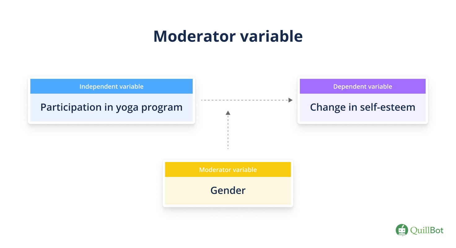 For example, the relationship between the dependent variable “mental health” and the independent variable “social media use” may be influenced by the moderator “age.” The impact that social media has on mental health depends on someone’s age.