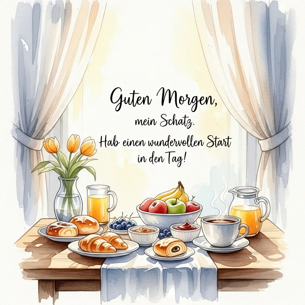 - an Partner/-in: Guten Morgen, mein Schatz. Hab einen wundervollen Start in den Tag!