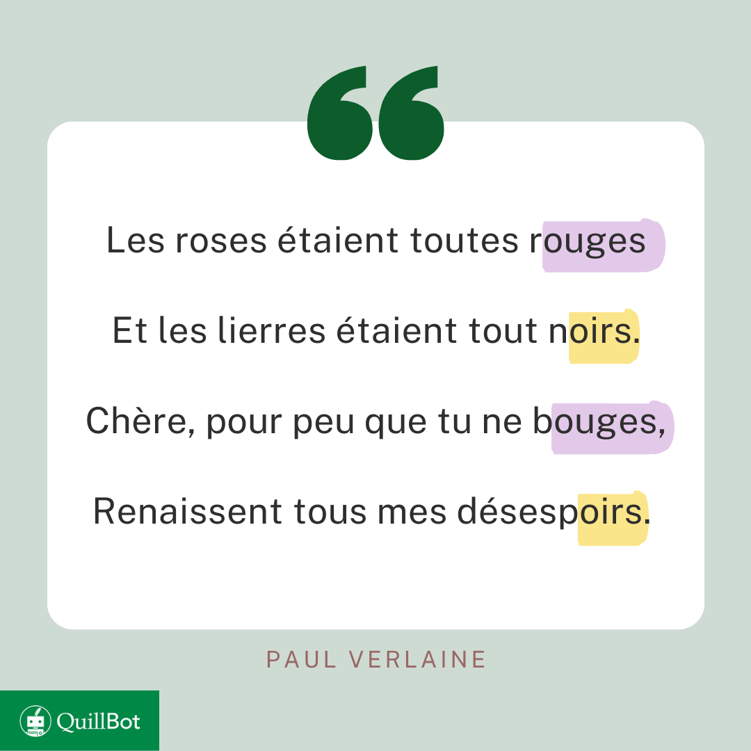 Ce poème de Paul Verlaine est composé de plusieurs paires de sonorités.